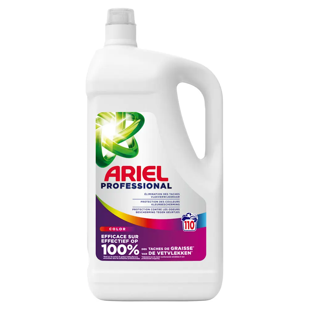 Ariel Professional Lessive Liquide Couleur est une lessive professionnelle spécialement formulée pour offrir un nettoyage remarquable aux professionnels : élimination exceptionnelle des taches, nettoyage en profondeur, blancheur éclatante, fraîcheur et efficacité remarquables à basse température.